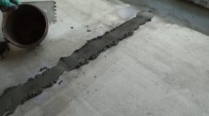 ![]() ![]() Шаг 3 – исправление изъянов пола: заделывание штробы |