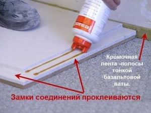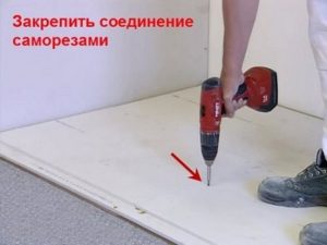 Дополнительно к клею, плиты скрепляются между собой саморезами (4×19 мм).