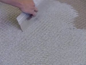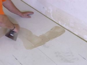 Если в качестве напольного финишного покрытия будет выбран мягкий материал, например, ковролин или линолеум, то швы между плитами нужно зашпаклевать. Для этой цели хорошо подходит шпаклевка «Фюгенфюгель» компании «Кнауф». Когда шпаклевка застынет, швы нужно аккуратно отшлифовать.