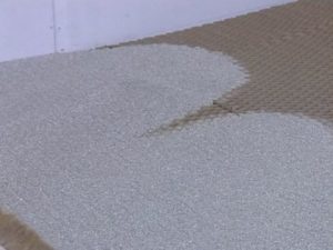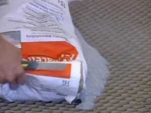 Далее, когда на полы будут установлены сотовые блоки, в них из мешков засыпается смесь, предназначенная для сухой стяжки.