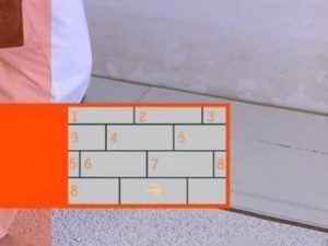 Схема укладки жесткого покрытия представлена на этом рисунке. Монтаж панелей начинается с дальнего угла комнаты. Во втором ряду укладки швы между плитами смещаются относительно первой линии на ½ длины панели. Поэтому кладку следует начинать с половины плиты.