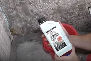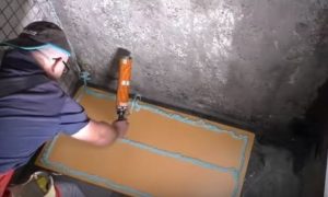 Произведя гидроизоляцию основания, все стены помещения необходимо обработать средством от плесени, чтобы она не проявила себя под слоями утеплителя. Стены, обработанные этим раствором должны хорошо просохнуть — время его просыхания и рекомендованное количество слоев указано на упаковке. На иллюстрации показал «лечащий « раствор», который обязателен при выявлении поражений. Если пятен плесени не найдено, то можно обойтись просто грунтовочным составом с антисептическим эффектом. |