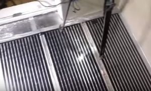 Производится тестовый пуск системы подогрева пола. Если все в норме, то сверху пленочный «теплый пол» обязательно необходимо закрыть плотной полиэтиленовой пленкой. Края пленки обычно выводят вверх вдоль стенок – они будут обрезаться уже после настила покрытия и прикрываться плинтусами. Пленка необходима для того, чтобы стать преградой для случайно разлитой воды – влага не должна попасть к электрическим нагревателям. |