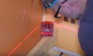 Получившийся каркас следует выровнять по уровню. При необходимости под брус и доски подкладываются прокладки из дерева нужной толщины. С помощью этих деталей каркас выводится на один горизонтальный уровень. |